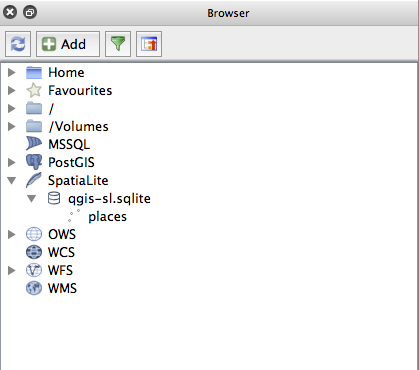 Browser panel အသုံးပြု၍ SpatiaLite database အသစ်တစ်ခုကို ဖန်တီးပေးနိုင်ပြီး ၎င်းကို QGIS ထဲတွင်အသုံးပြုရန်အတွက် ပြင်ဆင်သတ်မှတ်ပေးနိုင်ပါသည်။