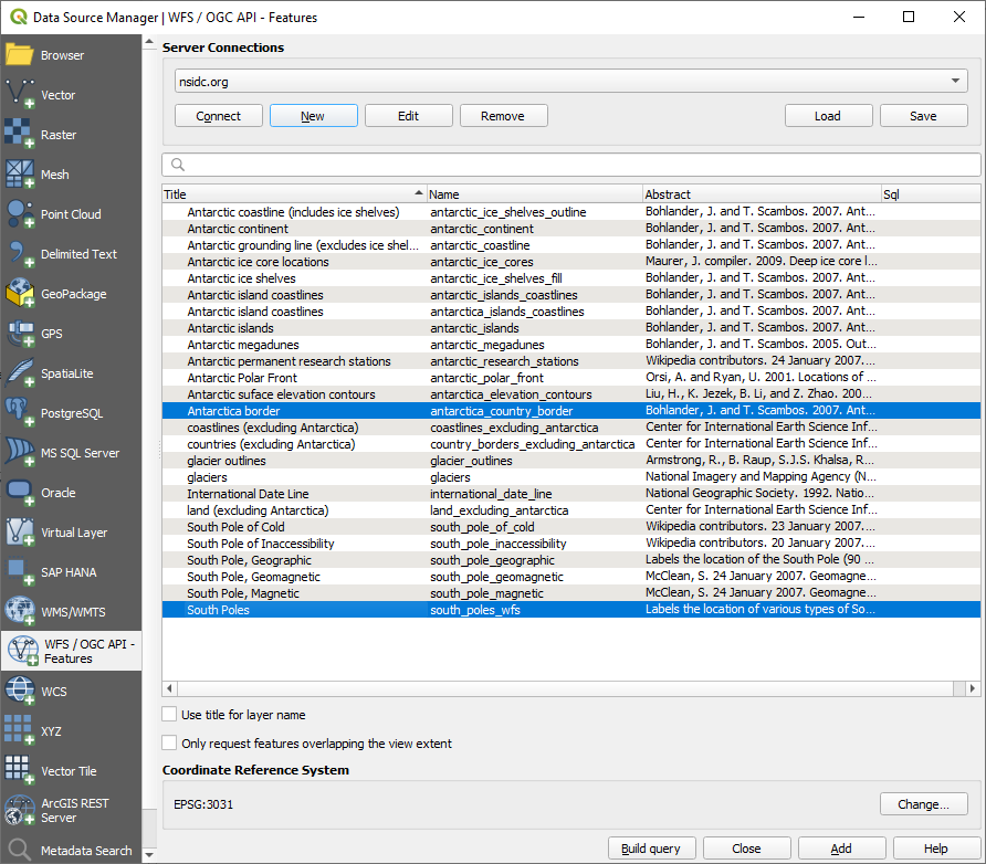 south_poles_wfs layer ကိုလည်း ရှာဖွေပြီး select လုပ်ပါ။ Ctrl ကိုဖိထားရန် လိုအပ်ပါမည်။